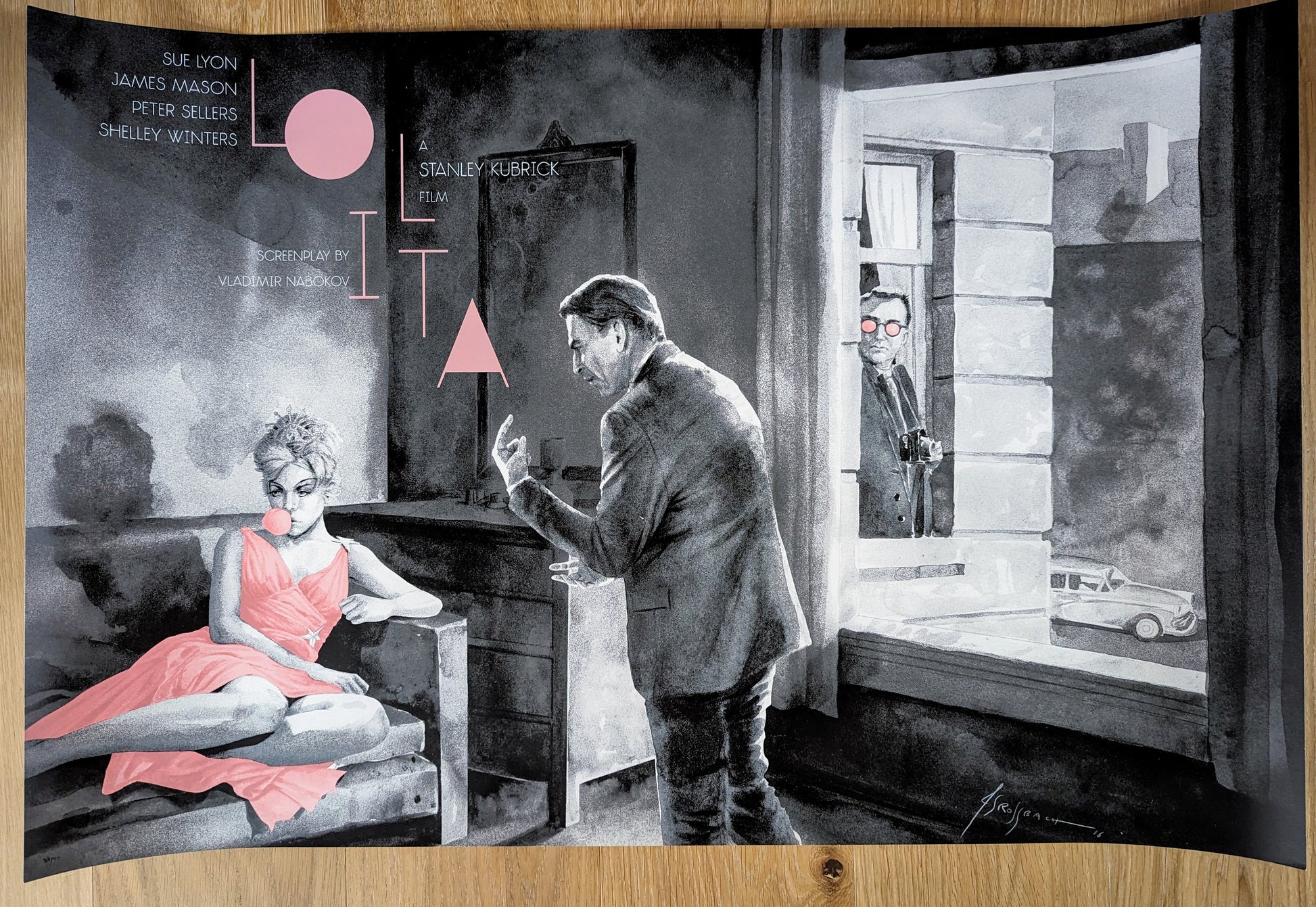 An official limited edition screenprint based off the 1962 movie Lolita: , directed by Stanley Kubrick and starring James Mason, Shelley Winters, Sue Lyon, Gary Cockrell.