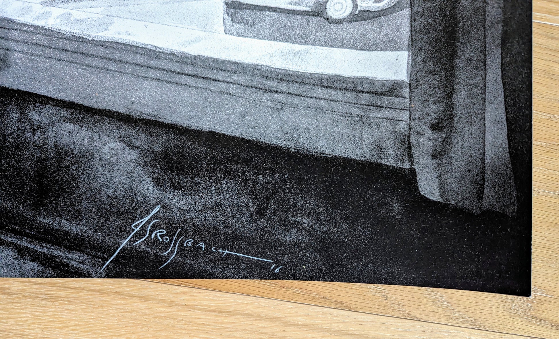 This print has significant creases throughout the image due to being damaged in transit. See photos. While the creases are large, fortunately they are not really visible when looking at the print as a whole, as can be seen in the photo. I had to turn the print to specific angles to capture the creases. And they would be even less visible if the print were framed. It could also be taken to a poster restorer who should be able to repair the creases - I may be able to recommend one if you need. In any case, the price has been significantly reduced as a result of the damage. A great opportunity to get this amazing print on your wall for cheap!