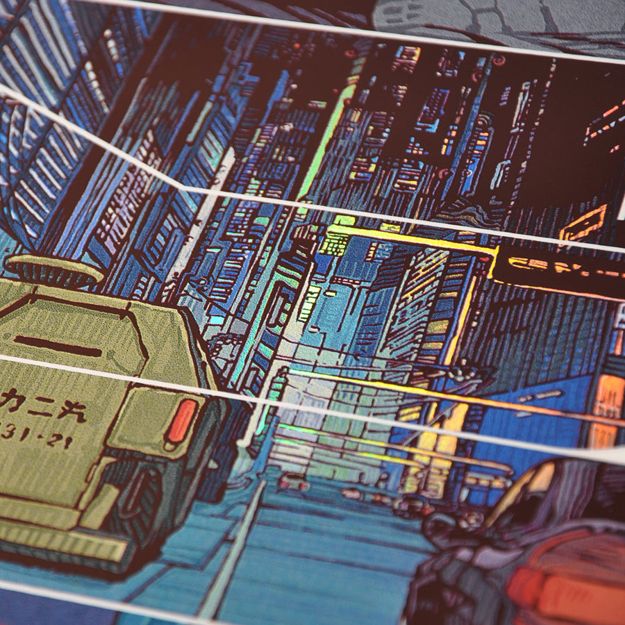 An official limited edition screenprint based off the 2017 movie Ghost in the Shell: , directed by Rupert Sanders and starring Scarlett Johansson, Pilou Asbæk, Takeshi Kitano.