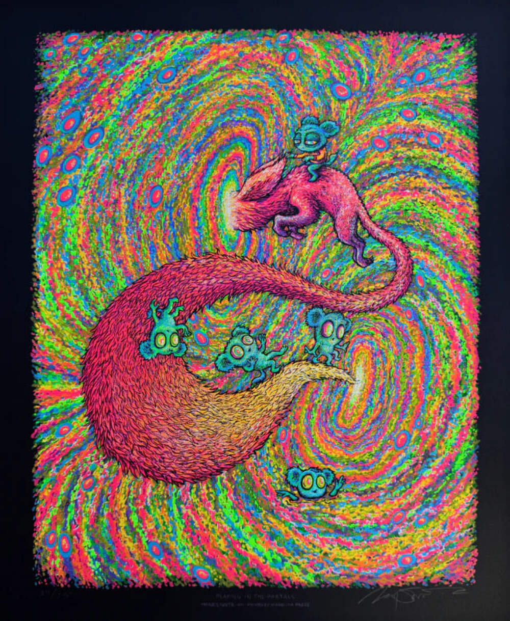 Playing in the Portals is a Screen Print by contemporary artist Marq Spusta. This print is Signed and Numbered by the artist from an edition of only 200. Guaranteed to be authentic; not a reprint.