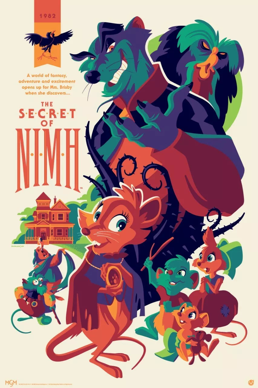 An official limited edition screenprint based off the 1982 movie The Secret of Nimh: , directed by Don Bluth and starring Elizabeth Hartman, Derek Jacobi, Dom DeLuise.